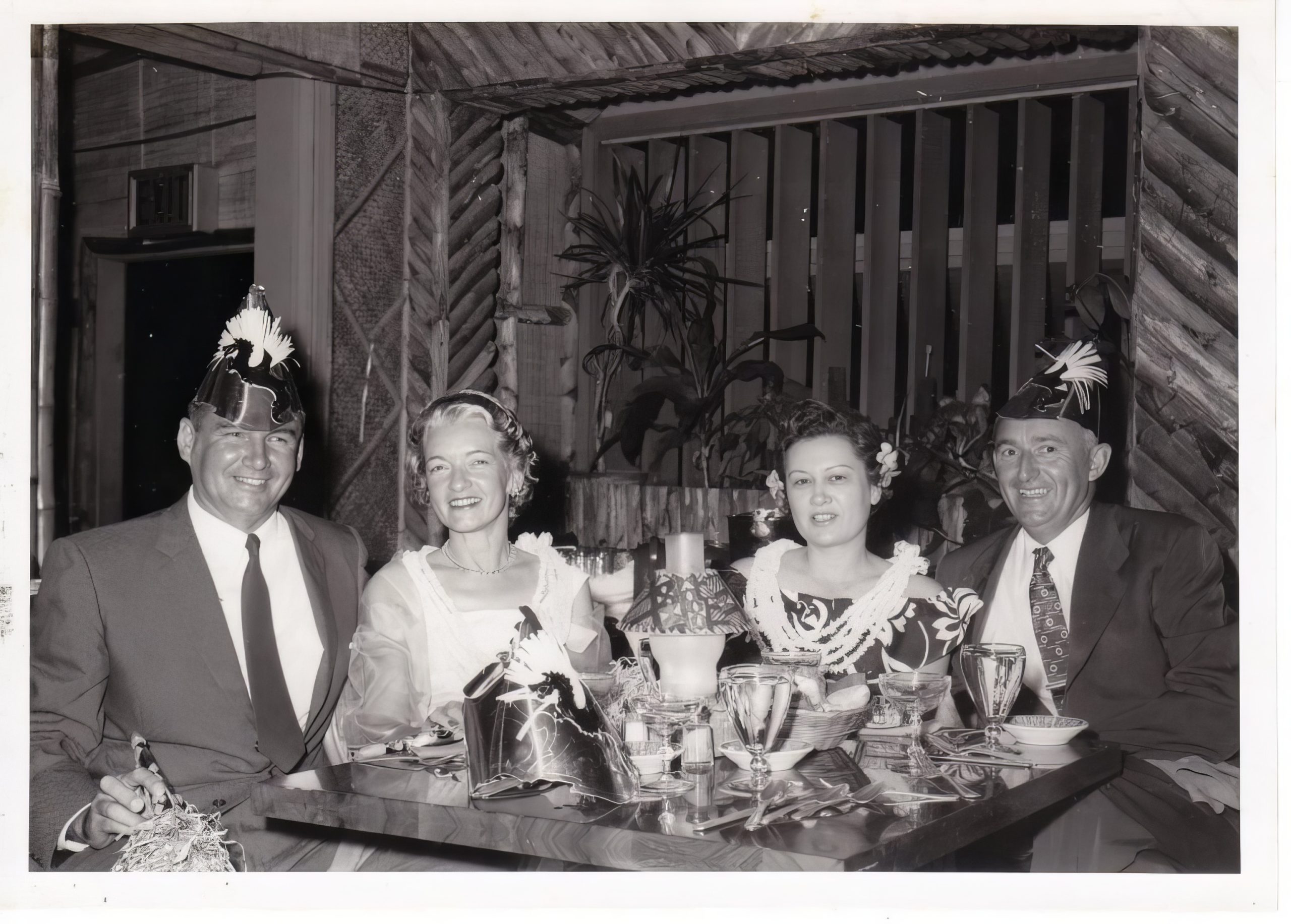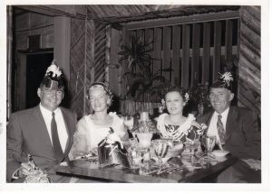 1955 My parents celebrating at the Hilton Hawaiian Village on New Year’s Eve with my dad’s cousin, Bill Fairley, and his wife. Left to right, my dad, John Lind, Fairley’s wife, my mom, Helen Lind, and Fairley. It was the first New Year celebration after the Hawaiian Village opened.