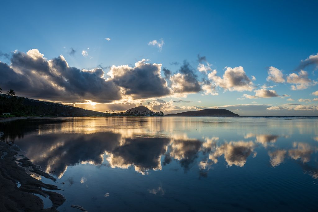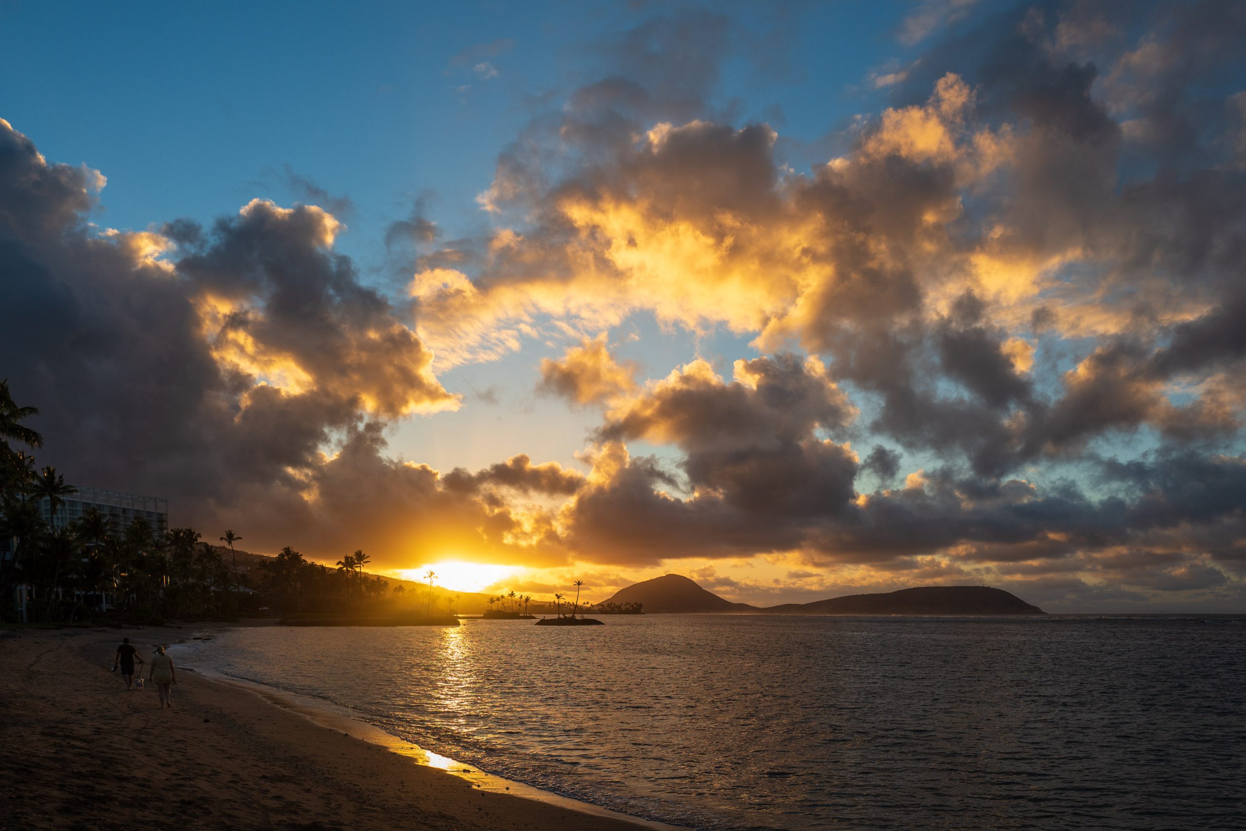Top photo: The rain blowing across Koko Crater and Koko Head, and taking aim on us. The rain and wind hit us a few minutes later.
