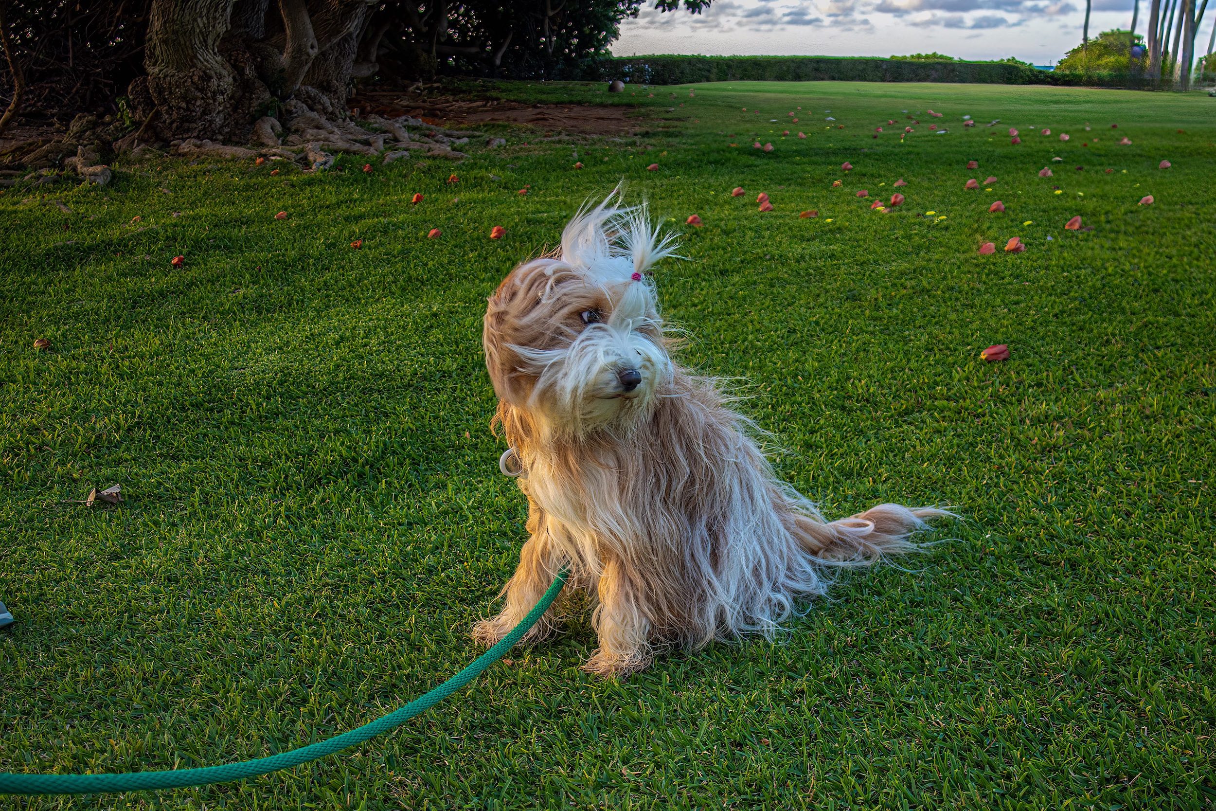 Sugi is a beautiful Tibetan Terrier. She loves her morning walks, loves to dig for crabs along the beach, and loves the promise of treats that we bring (actually, Meda carries the little dog treats that Sugi is most interested in).