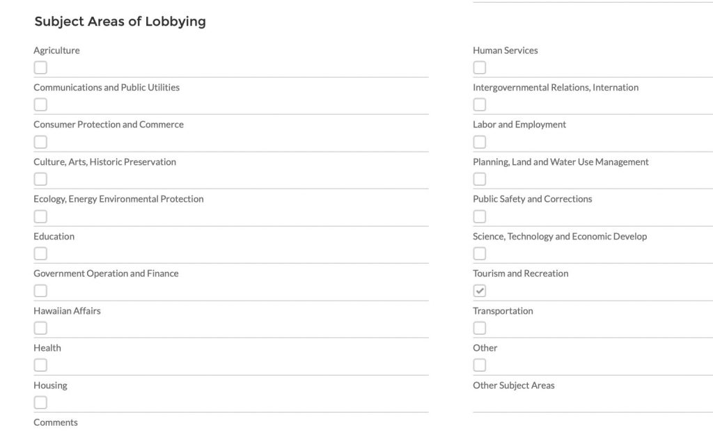 In the second spot, with just over half the lobbyist fees earned by Iosua, is Ann Chung, and her company, Chung Associates LLC. Although using the “associates” label, Chung is the sole lobbyist registered with the company. She reported seven clients, including the client that paid the highest amount of lobbyist compensation during the two month period. That client, Waikai Consulting LLC, reported spending $65,000, but is kind of a mystery. State business registration records have no company by that name licensed to do business in the state, either as a Hawaii company or a foreign firm doing business here.