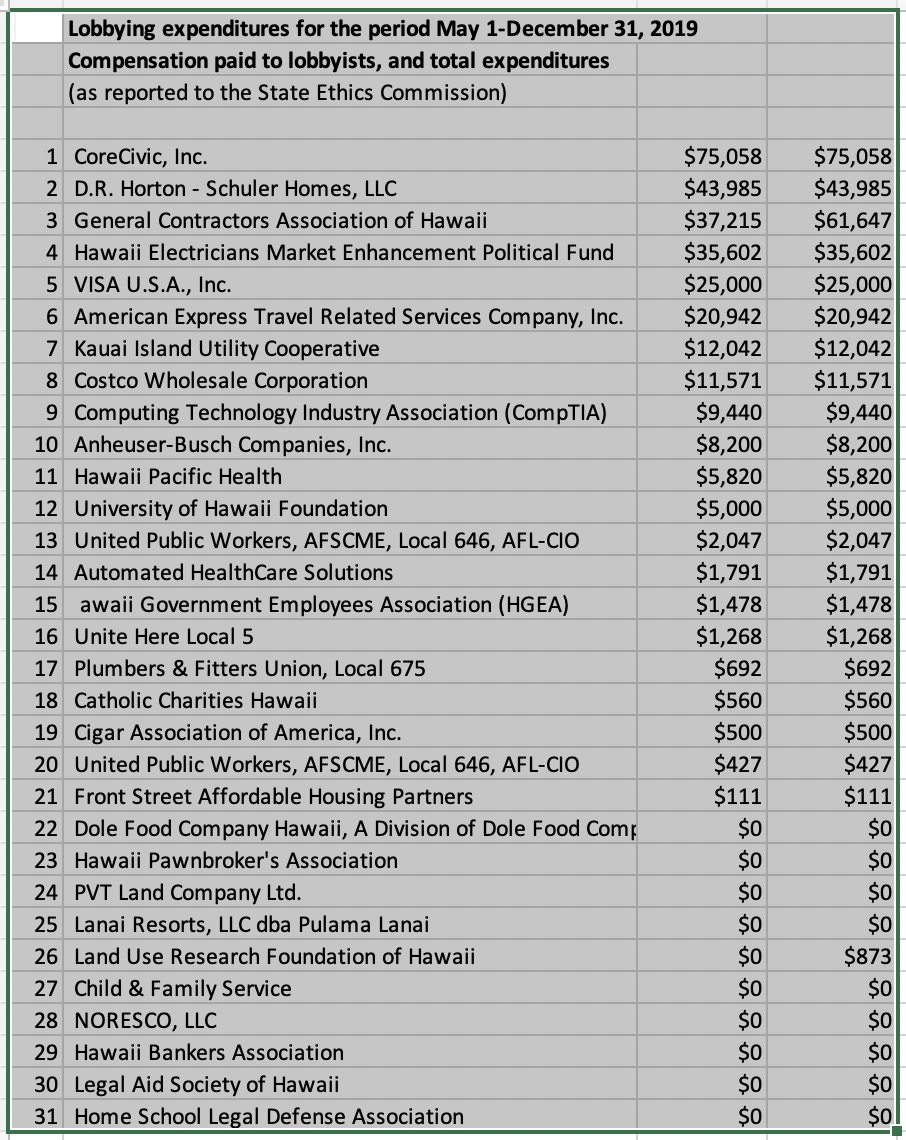 Do you suppose Hawaii’s professional lobbyists have been standing down during this health crisis, since they recognize their special interests, or those of their clients, are far less important than the overall public interest at times like this?