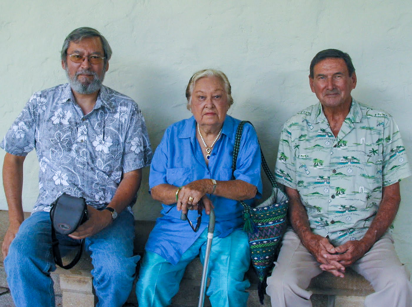 With my parents outside the Honolulu Academy of Arts, now known as the Honolulu Museum of Art. August 2002. My dad was 89, my mom a year younger. As I recall, we went there for lunch to celebrate my birthday.