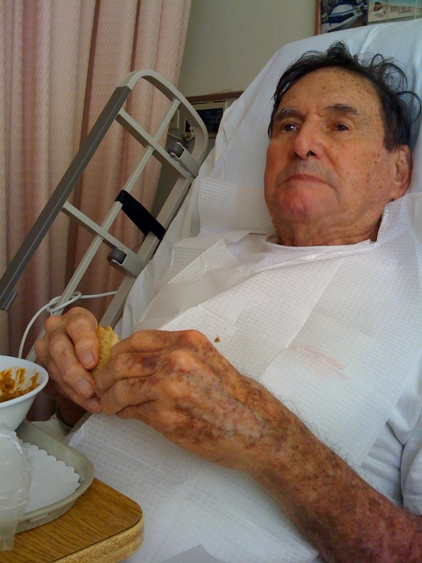 I stopped yesterday afternoon to visit with my dad after skipping a couple of days. He’s been confined to a Honolulu nursing home since late 2008, suffering from a combination of dementia, Alzheimers, and less serious physical ailments. He will be 96 on December 7. There are good days and bad days. I would count yesterday among the latter.