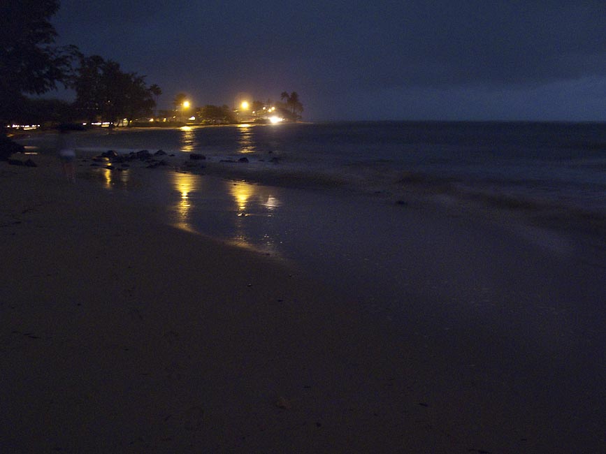 I’m not quite sure why I’m carrying a camera during our early morning walk these days. It’s still dark through most of the walk, and doesn’t yet start getting much light until we’re well on the return path towards home. This was the scene when we got to the end of the beach in Kaaawa yesterday and turned around to head back home. Not much to be seen. But under some conditions, the sky can explode with color 30 to 40 minutes before dawn, and I feel like I just have to be prepared. Just in case.