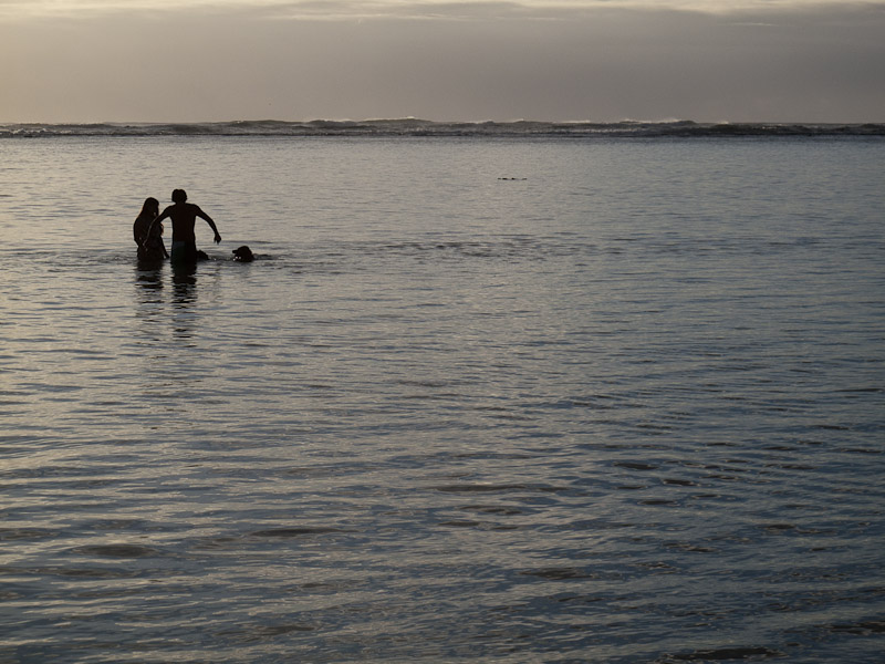 Enough of all that. Time to enjoy a little moment of silence on this Memorial Day 2009. Here a couple and their two dogs enjoy an early morning dip in Kaaawa. Does it get much better than this?